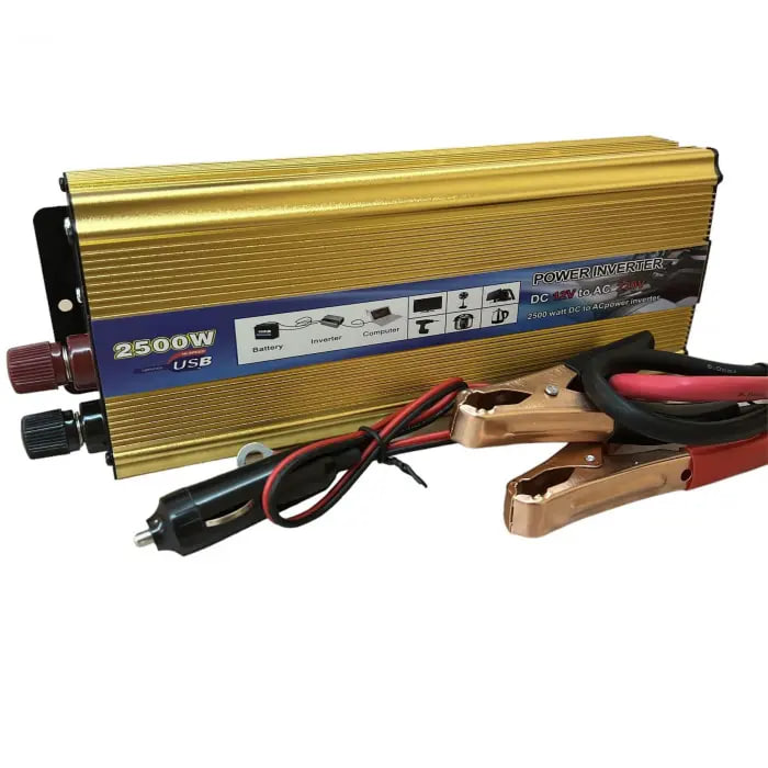 Перетворювач Power 2500W — надійний пристрій для живлення техніки там, де немає доступу до стаціонарної мережі. Він легко підключається до акумулятора або прикурювача та забезпечує стабільну напругу 220 В для ваших електроприладів.