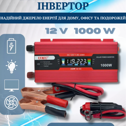 Купуйте інвертор-перетворювач AC/DC 1000W 12V з LCD-дисплеєм KC-1000D у VIKIR та отримайте надійне джерело живлення для ваших пристроїв! Швидка доставка по Україні.