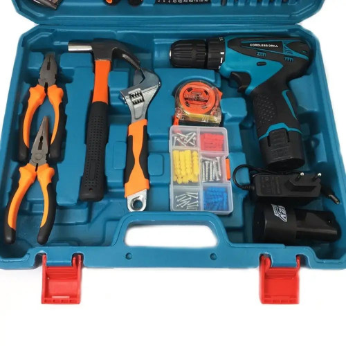 Бездротовий дриль з комплектом інструментів у валізі – Універсальний набір для ремонтних робіт