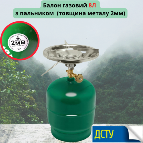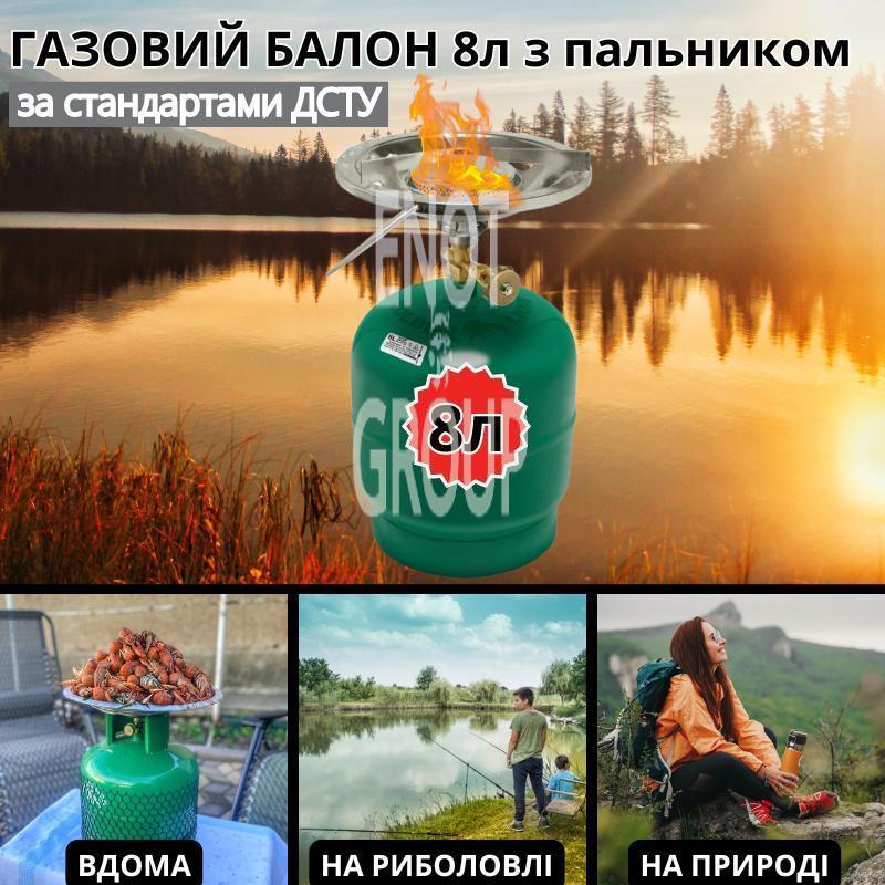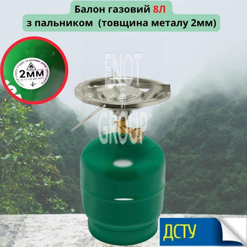 Газовий балон 8 л з пальником (зелений) – Ваш надійний супутник на природі та вдома