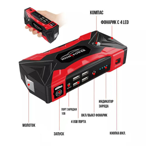 Цей потужний пускозарядний пристрій JUMPSTARTER QY33 є незамінним помічником для вашого автомобіля та мобільних пристроїв. Завдяки ємності 99800 мАг, він здатен не тільки забезпечити запуск автомобіля, але й швидко заряджати смартфони, планшети, ноутбуки та інші гаджети. Ліхтарик, що входить до складу пристрою, стане корисним додатком у разі потреби у додатковому освітленні.
