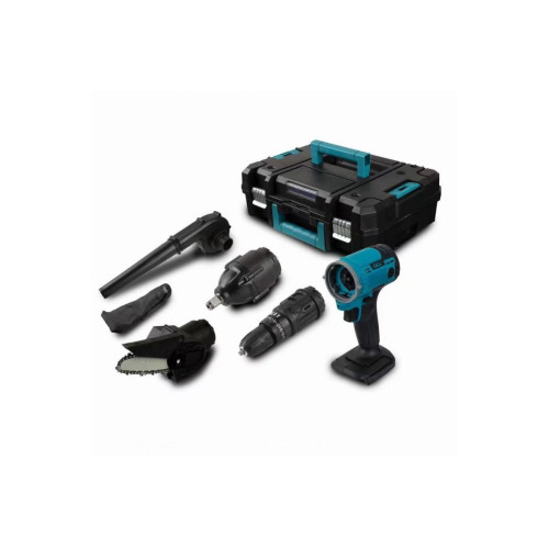 МайстерПро 5в1 – це інноваційний набір електроінструментів, створений для максимальної зручності та універсальності. Одна багатофункціональна база перетворюється на шуруповерт, гайковерт, дуйку, пилосос і пилу, дозволяючи впоратися з будь-якими завданнями – від збирання меблів до будівництва.