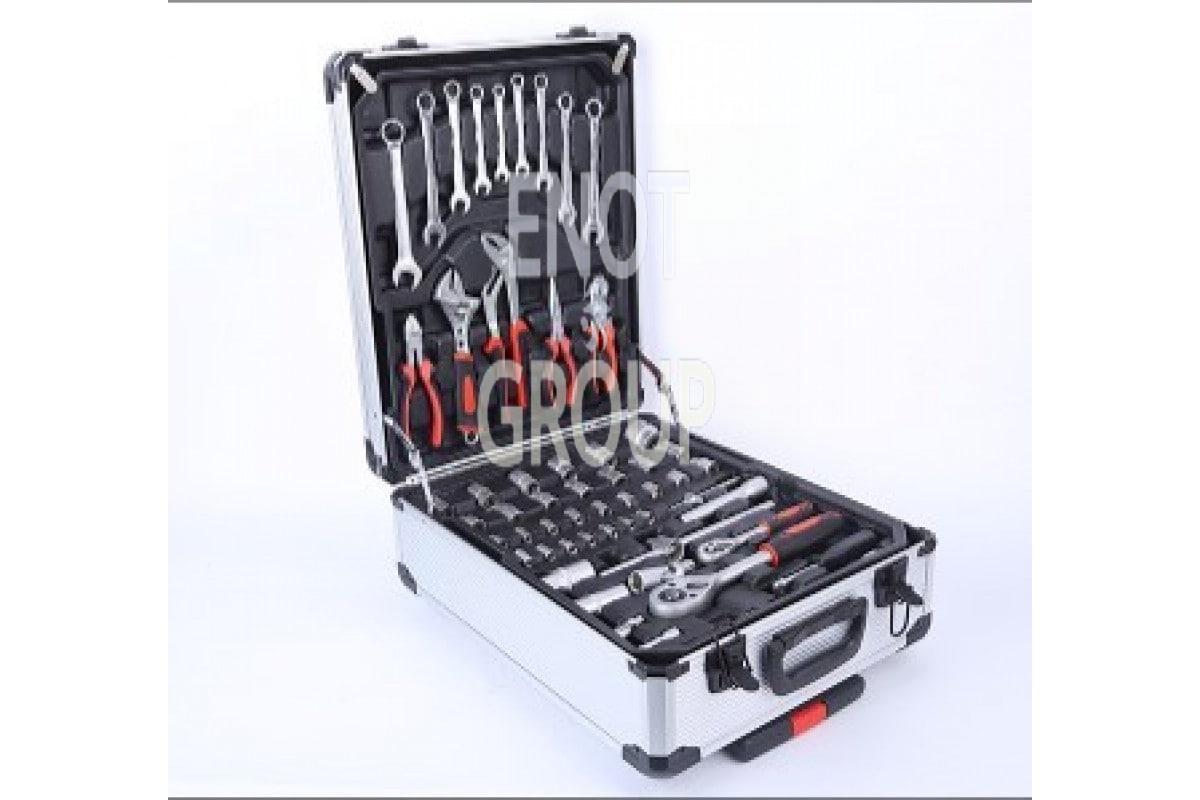 Повний набір із 187 предметів – ключі, викрутки, насадки, біти, плоскогубці, тріскачки та інші інструменти.