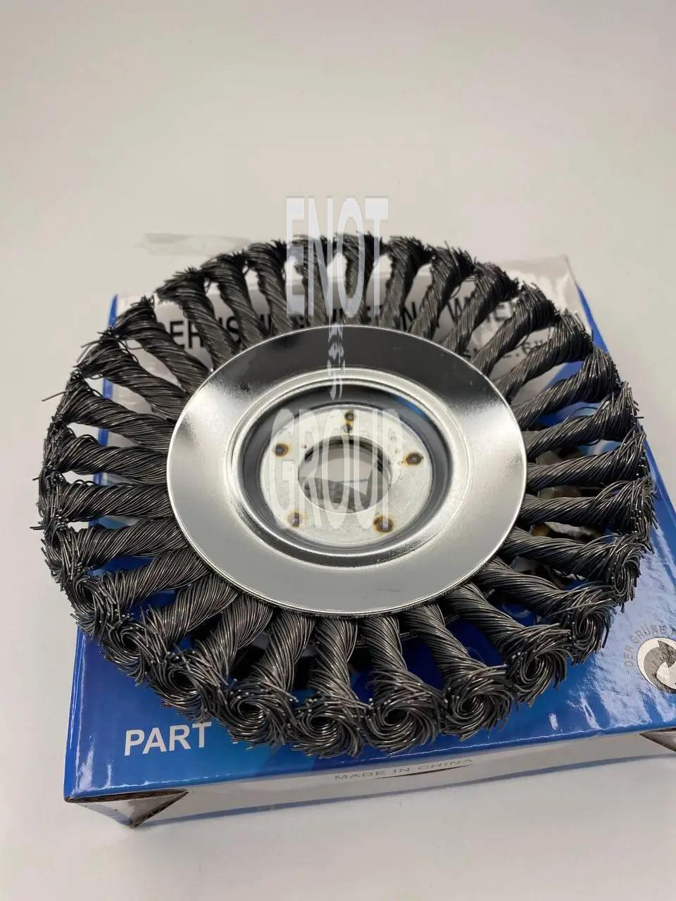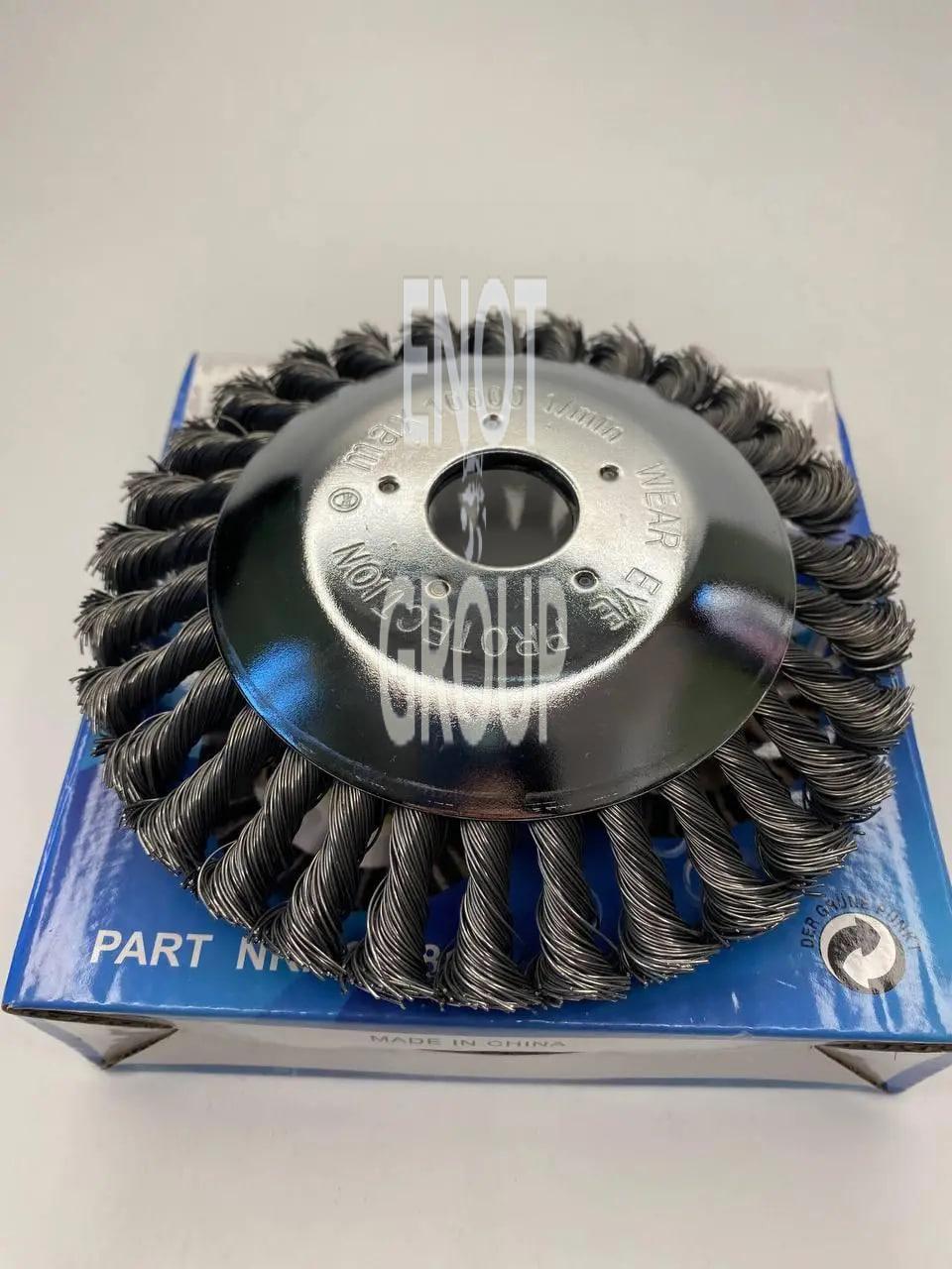 Ця металева щітка-насадка на тример діаметром 150 мм спеціально розроблена для очищення тротуарної плитки, асфальту, бордюрів і швів між камінням. Виготовлена з міцного сталевого дроту, вона забезпечує максимальну зносостійкість і високу ефективність навіть при інтенсивному використанні.