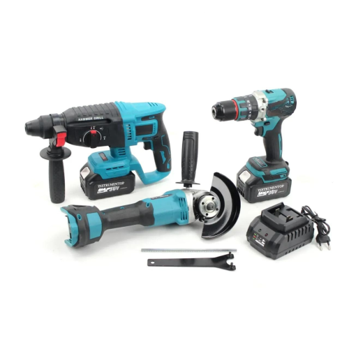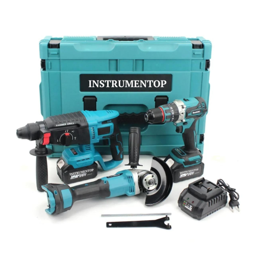 Instrumentop 3в1 36V — це комплексний набір безщіткового акумуляторного інструменту, що забезпечує максимум продуктивності для професійного та домашнього використання. Ви отримуєте потужний перфоратор, ударний шуруповерт і кутову шліфмашину (болгарку) — ідеальний комплект для монтажу, ремонту, будівництва та сервісних робіт.