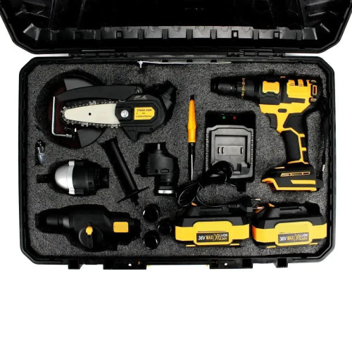 Потужний і зручний набір Instrumentop 5в1 з шуруповертом DCD709M — ідеальне рішення для домашнього та професійного використання. Акумулятор 36V та ємність 6AH забезпечують довготривалу автономну роботу, а зручний кейс та комплект насадок роблять набір повністю готовим до роботи.