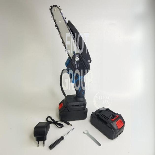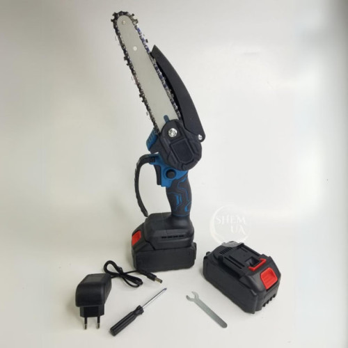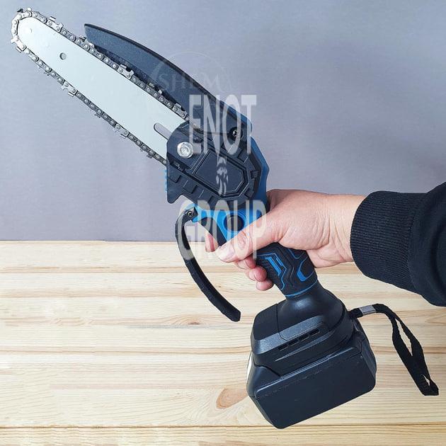 Акумуляторна міні-пила — це зручний та потужний інструмент для обрізки дерев, гілок, заготівлі дров та навіть легких столярних робіт. Завдяки подовженій шині 20 см (8 дюймів) і потужному акумулятору, ця модель ідеально поєднує мобільність і функціональність.