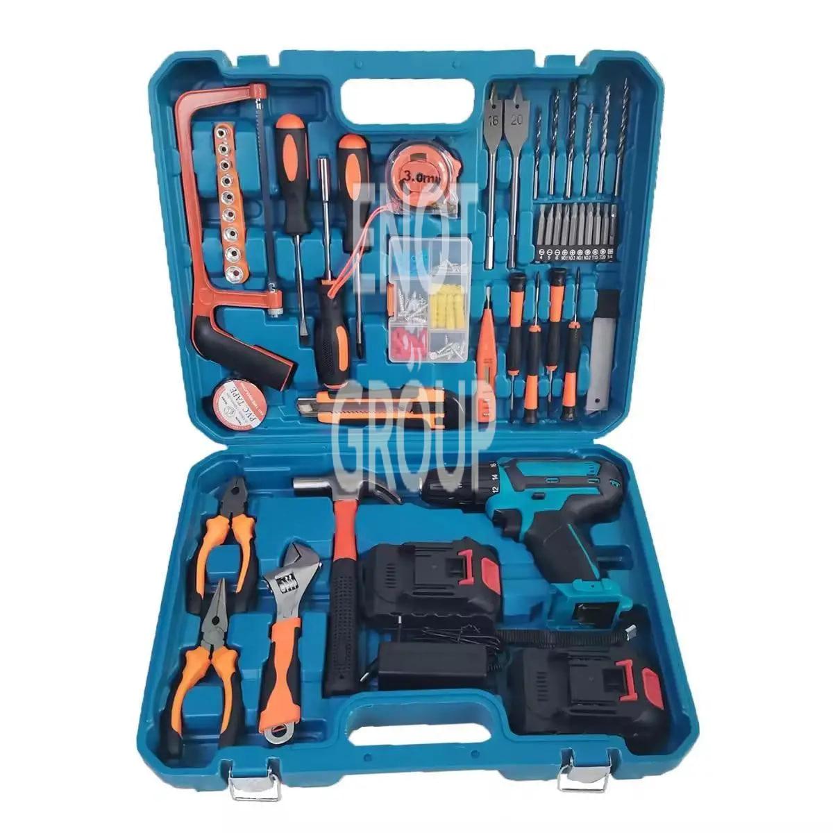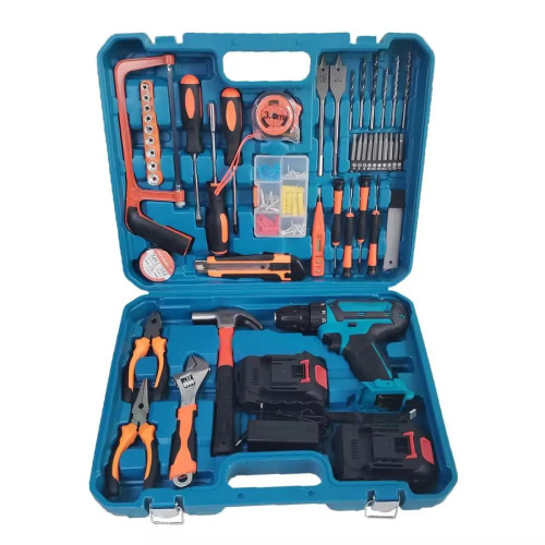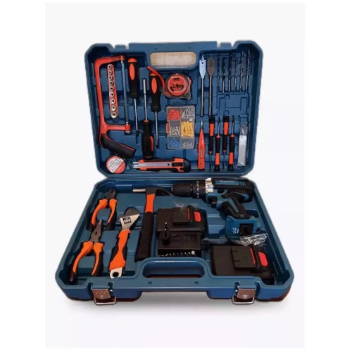 Акумуляторний дриль-шуруповерт з набором інструментів у валізі