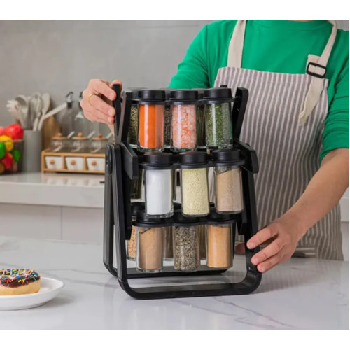 Зробіть процес приготування зручнішим та приємнішим з органайзером-каруселлю TOPA! Вміщує до 18 баночок зі спеціями, які легко обертаються на практичній підставці, дозволяючи швидко знаходити потрібну приправу без зайвого клопоту.