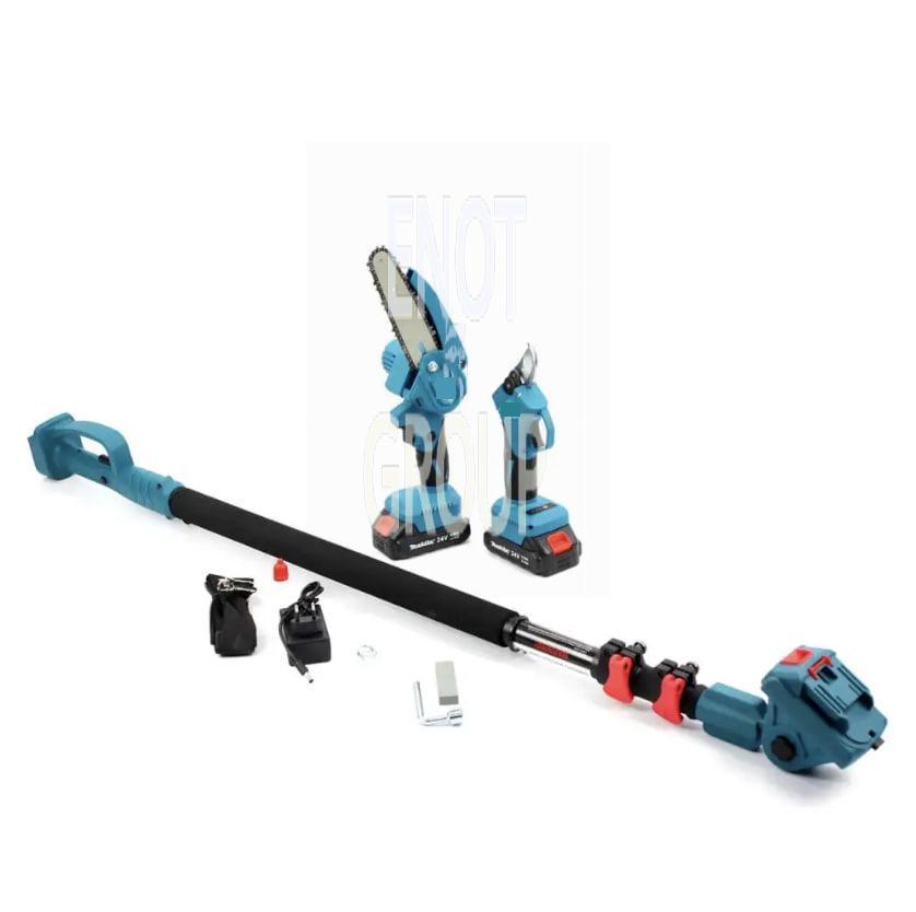 Професійний набір Instrumentop 3в1 — це універсальний інструмент для садівника, фермера або працівника ЖКГ. У комплекті ви отримуєте потужну акумуляторну пилу, інноваційний цифровий секатор та розсувну телескопічну штангу, яка дозволяє легко діставати навіть найвищі гілки.
