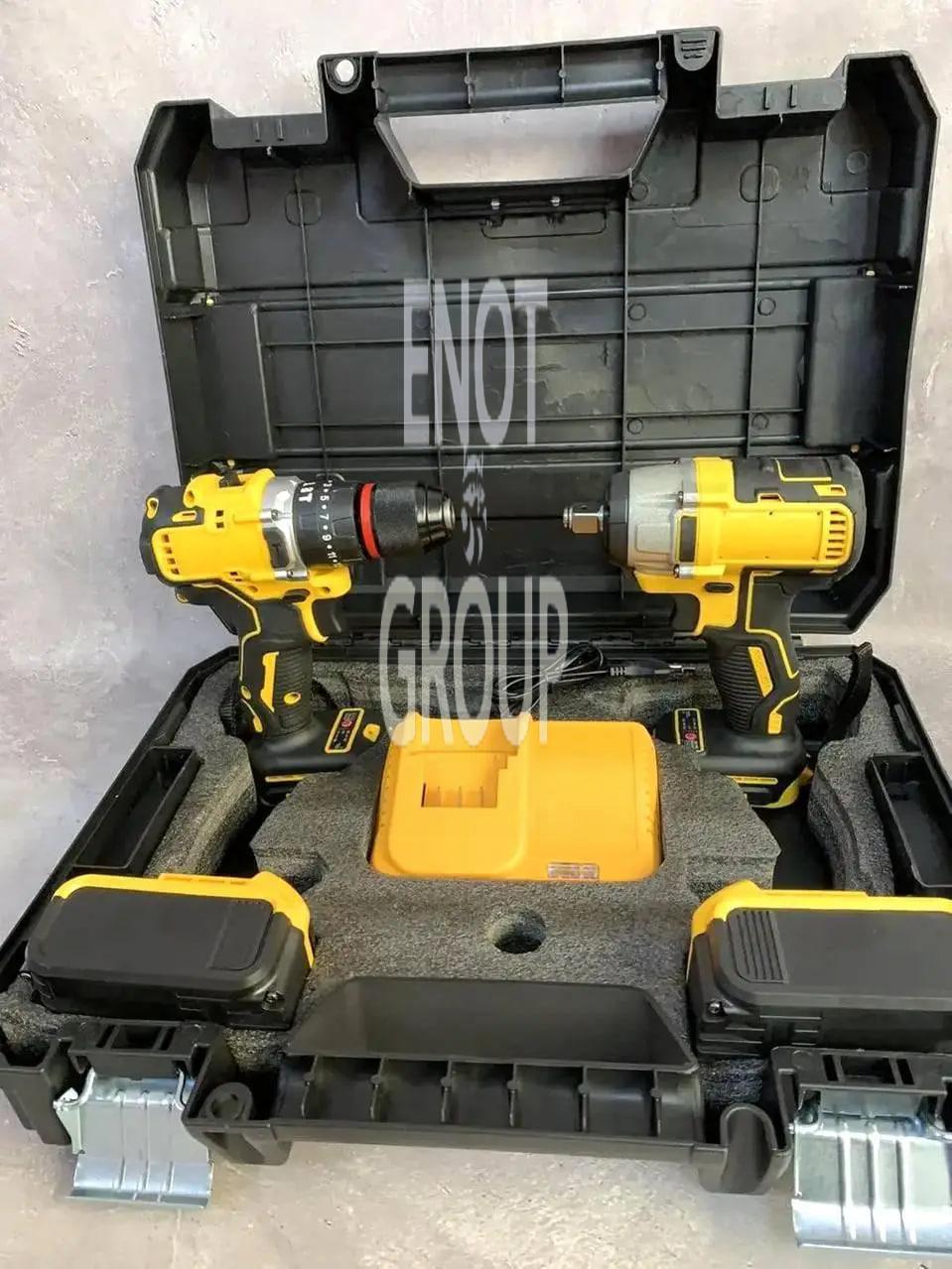 Комплект комплектується двома акумуляторами, що дозволяє працювати безперервно, поки один заряджається. Усі інструменти зручно зберігати та транспортувати у міцному кейсі.