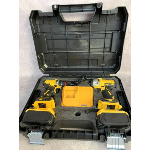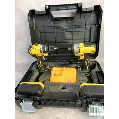 Комплект комплектується двома акумуляторами, що дозволяє працювати безперервно, поки один заряджається. Усі інструменти зручно зберігати та транспортувати у міцному кейсі.