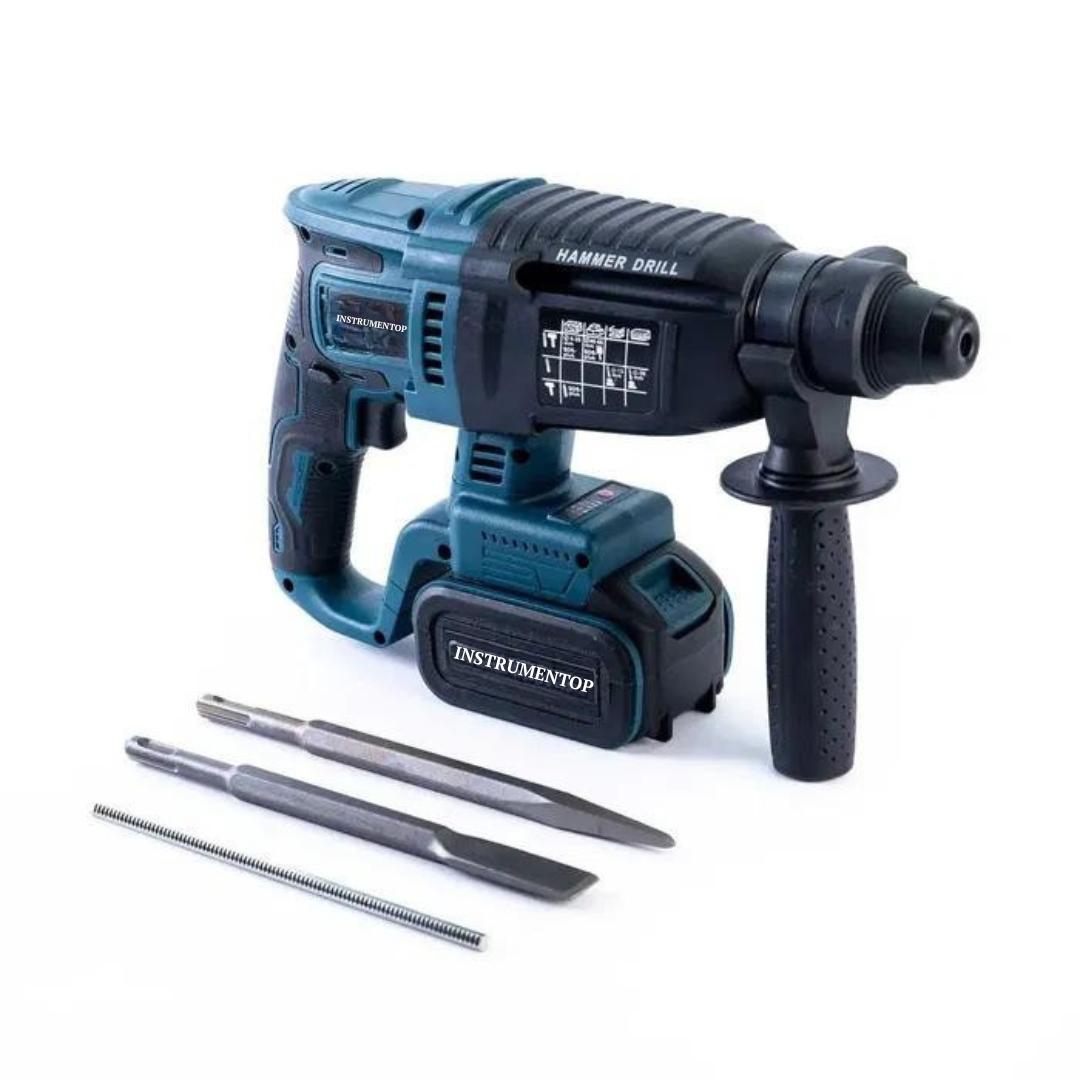 Перфоратор Instrumentop — три режими: свердління, свердління з ударом і довбання. Потужність 48V забезпечує ефективну роботу з бетоном, цеглою, каменем