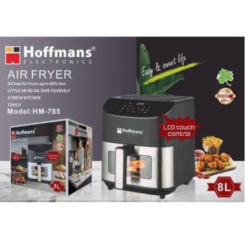 Аерофритюрниця Hoffmans HM-785 8 Л 2000 Вт з LCD-дисплеєм та сенсорною панеллю, безмасляна електрична фритюрниця-аерогриль чорного кольору з металевими вставками, мультипіч для здорового приготування