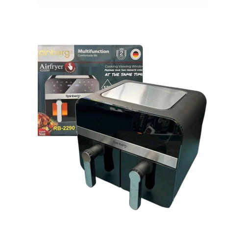 Аерогриль Rainberg RB-2290 з потужністю 4200 Вт і двома контейнерами об’ємом 13 л — це ідеальне рішення для швидкого та здорового приготування улюблених страв!