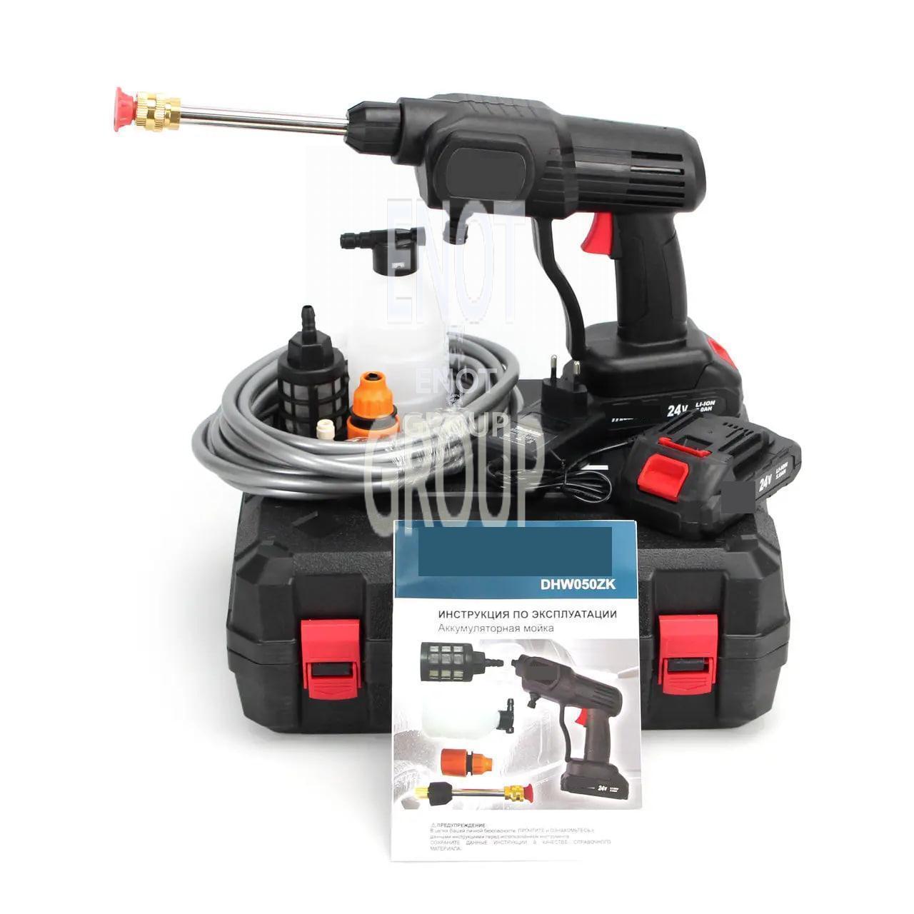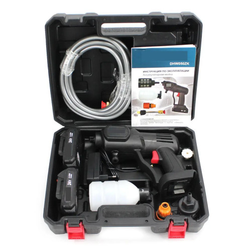 Акумуляторна ручна мийка Instrumentop DHW040ZK — це зручний і потужний пристрій для миття різних поверхонь без необхідності підключення до електромережі. Завдяки літій-іонному акумулятору на 21 В та ємності 5 Ah, вона здатна працювати тривалий час без додаткової підзарядки. Модель оснащена потужним насосом, що забезпечує максимальний тиск 26 барів для ефективного очищення від бруду, пилу та інших забруднень.