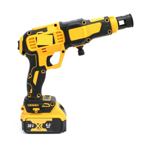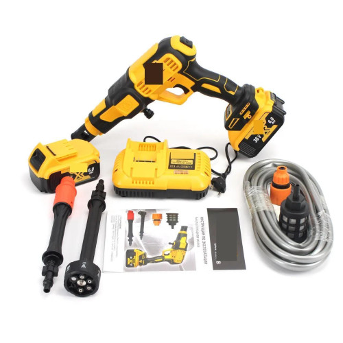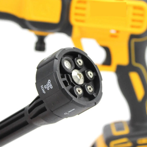 Ручна мийка DCPW550B має зручний портативний дизайн, що робить її ідеальним інструментом для чистки автомобіля, плитки, садових меблів і багатьох інших об'єктів. Без необхідності підключення до мережі електроживлення, вона забезпечує повну свободу переміщення. У комплекті з мийкою ви отримуєте зручний шланг і різноманітні насадки для налаштування різних режимів водяного струменя — від делікатного очищення до інтенсивного видалення бруду.