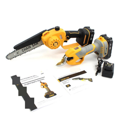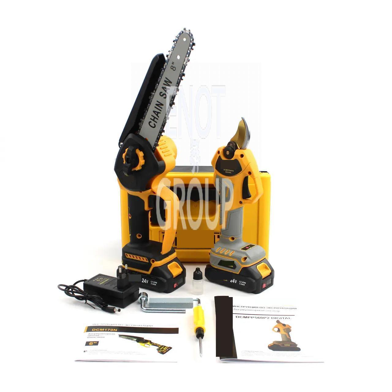 Акумуляторний набір 2в1 Instrumentop 24V ланцюгова пила DCM170N та цифровий секатор DCMPP560P2 для професійного догляду за садом і деревами
