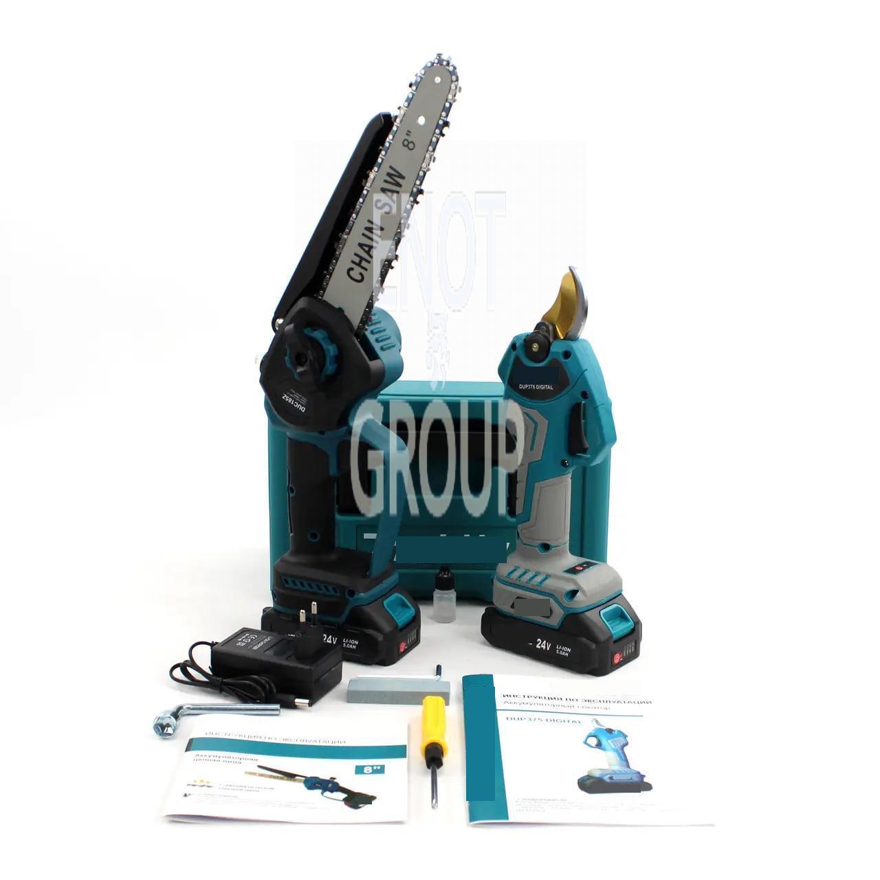 Акумуляторний набір 2в1 Instrumentop 24V пила DUC185Z та секатор DUP375 Digital для професійного догляду за садом та деревами