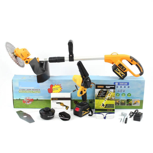 - Зручність використання: перемикання між тримером та міні-пилою без зайвих зусиль, що дозволяє швидко адаптуватися до різних робіт.
