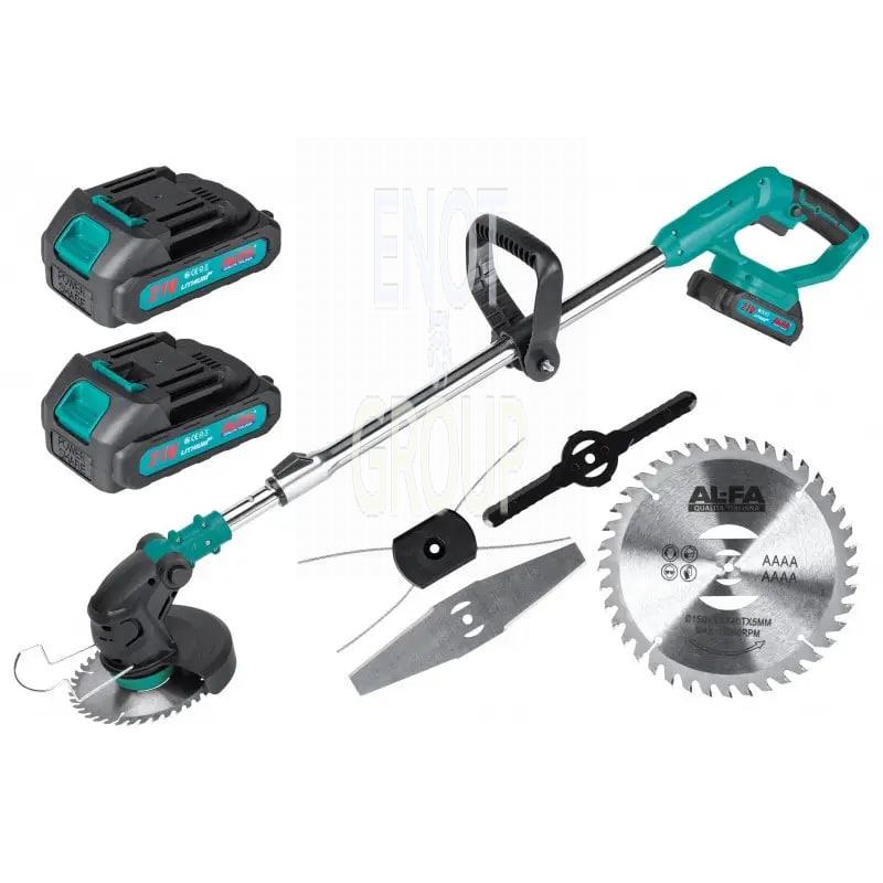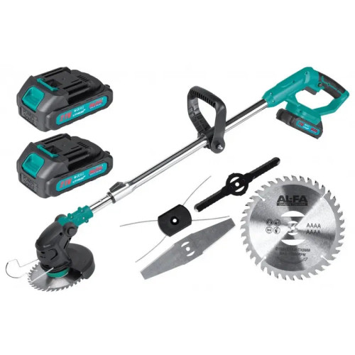 Підстригання газону — це легко з акумуляторним тримером AL-FA ALCGTBH-21V. Оснащений двома акумуляторами 21V по 2.0Ah, цей компактний пристрій дозволяє працювати без проводів і обмежень.