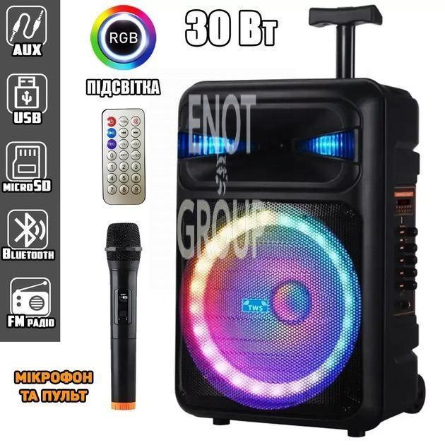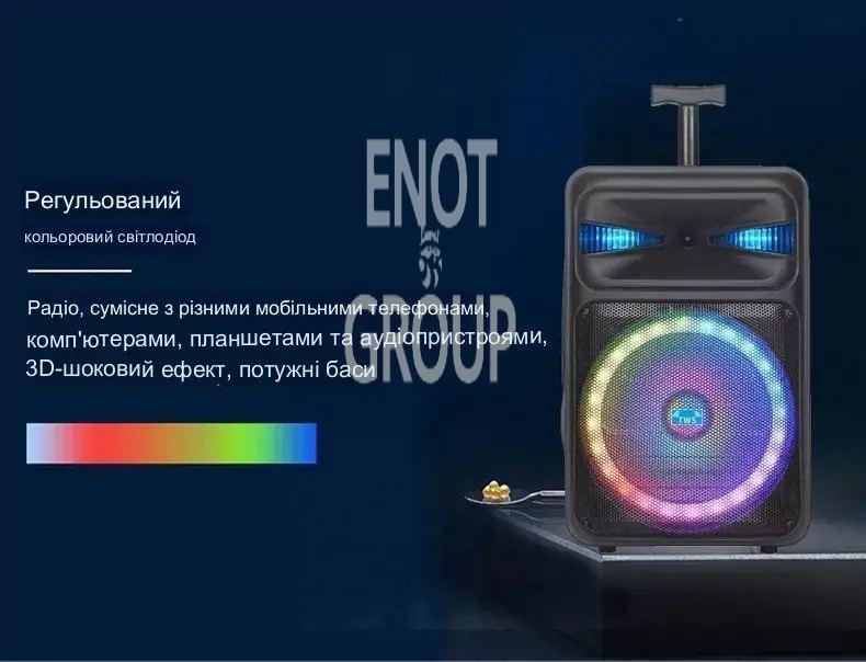 Акустична система NDR-Q12 – потужна портативна колонка з бездротовим мікрофоном та пультом управління для повного контролю над звуком!