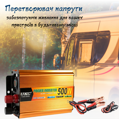 Купуйте автомобільний перетворювач напруги UKC SSK 500W з модифікованою синусоїдою у VIKIR та забезпечте надійне живлення для ваших пристроїв у будь-яких умовах! Швидка доставка по Україні.