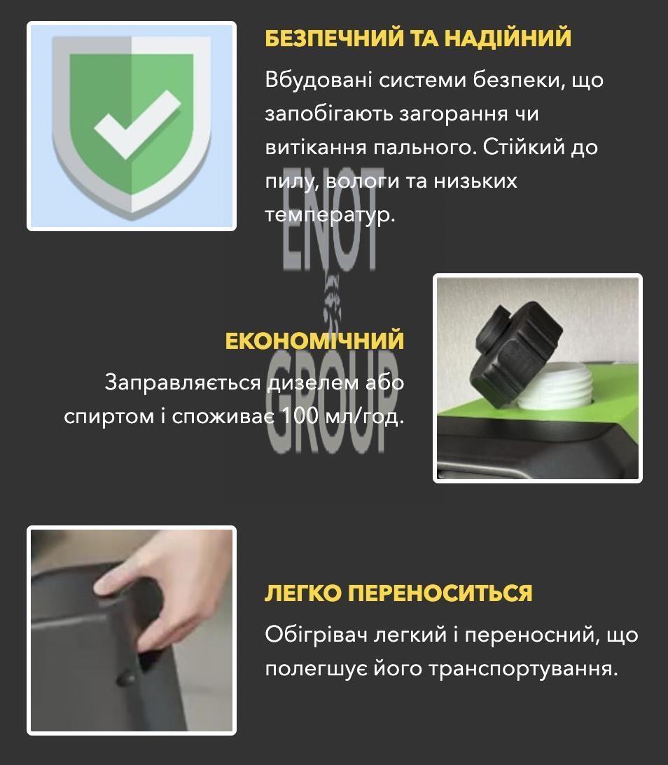 Збережіть комфорт та тепло у будь-яких умовах з автономним обігрівачем GREELHEAT. Це потужний пристрій, що працює на дизельному паливі або спирті, ідеально підходить для обігріву приміщень до 60 кв.м. Обігрівач ефективно працює навіть у найсуворіших кліматичних умовах при температурах від -40°C до +50°C.