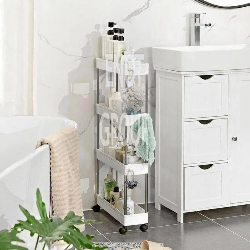 SlimRoll Tower — це ваша надійна помічниця у зберіганні речей у будь-якому куточку дому. Завдяки вузькому корпусу та 4 функціональним полицям, вона легко вміститься у ванну кімнату, між шафами на кухні або в гардеробну.