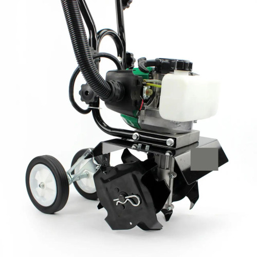 Оснащений надійним двотактним двигуном потужністю 5,4 кВт (5,2 к.с.), мотокультиватор забезпечує обертання фрез до 3200 об/хв. Об’єм поршня — 62 см³, а хромоване напилення стінок циліндра продовжує термін служби двигуна. Робоча ширина культивації становить 30 см, а максимальна глибина заглиблення фрези — 10 см, що гарантує ефективне видалення бур’янів і підтримання структури ґрунту.