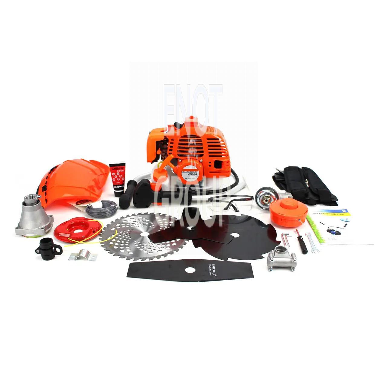 - Косильна головка з ліскою і кілька дисків (2т, 3т, 8т та 40т) для різних типів трав та чагарників