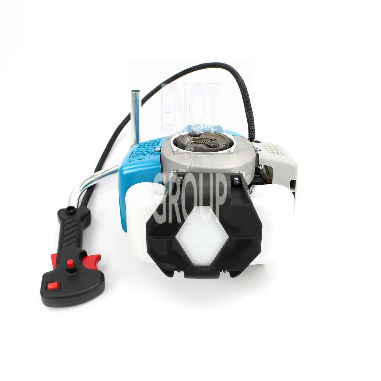 Потужність мотокоси становить 4800 Вт або 6,5 л. с., що дозволяє без зусиль справлятися з великими обсягами робіт. Висока швидкість обертання ріжучого елемента сприяє швидкому обробленню великих площ трави. Цей інструмент підходить як для дрібних робіт по газону, так і для більш серйозних завдань, таких як заготівля сіна для тварин.