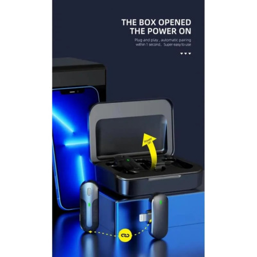 Мікрофон підтримує миттєве автоматичне підключення: достатньо вставити приймач у порт Lightning, і він відразу синхронізується зі смартфоном без додаткових налаштувань. Це робить пристрій ідеальним для швидкого запису аудіо та відео-контенту.