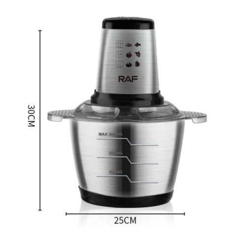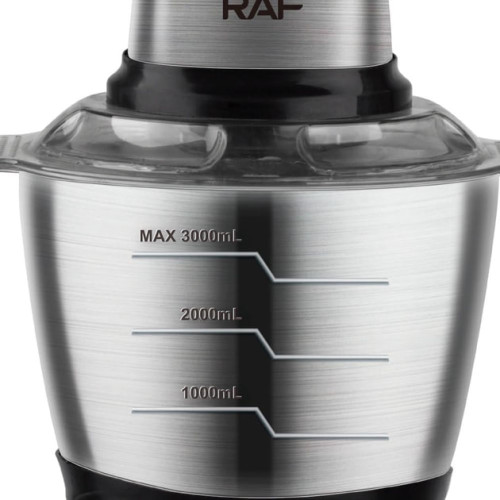 Завдяки потужності 1000 Вт і двом швидкостям роботи, RAF R-7031 швидко та ефективно подрібнює будь-які продукти, забезпечуючи однорідну консистенцію. Чаша об’ємом 3 л з нержавіючої сталі захищена від ударів, подряпин та корозії, а металевий корпус гарантує надійність і довговічність пристрою.