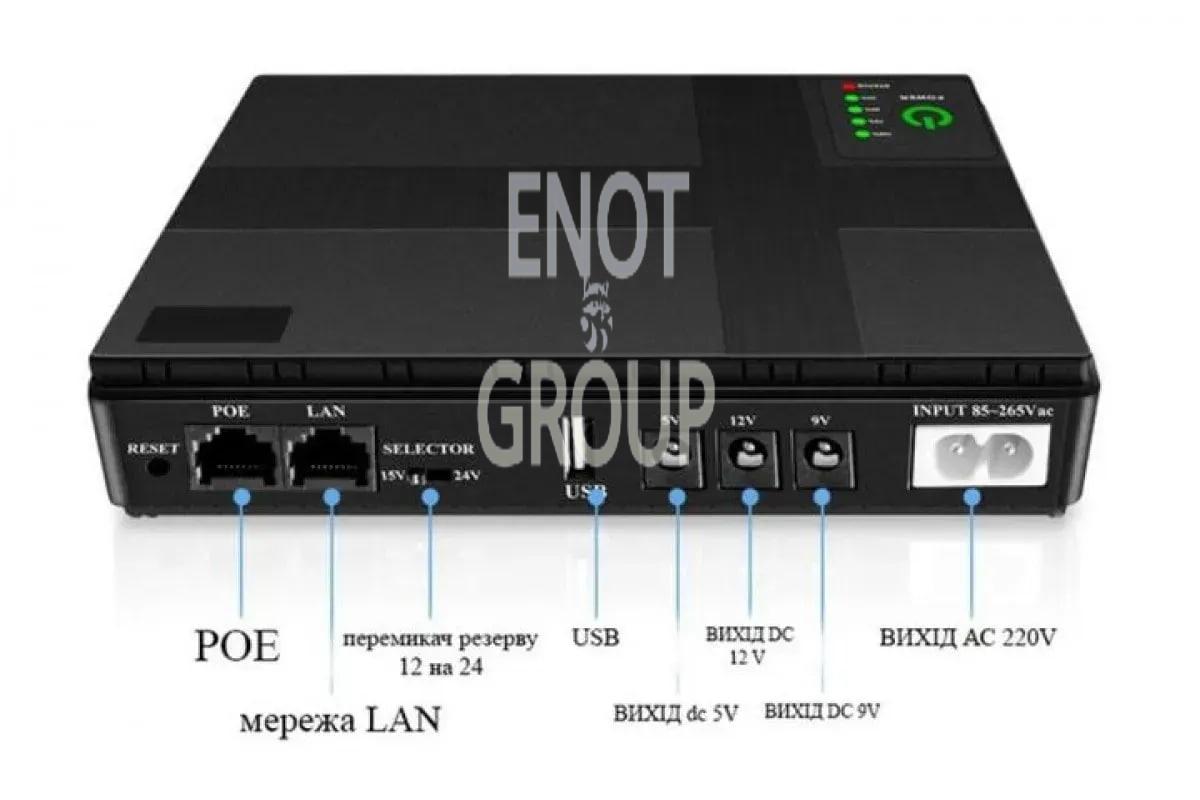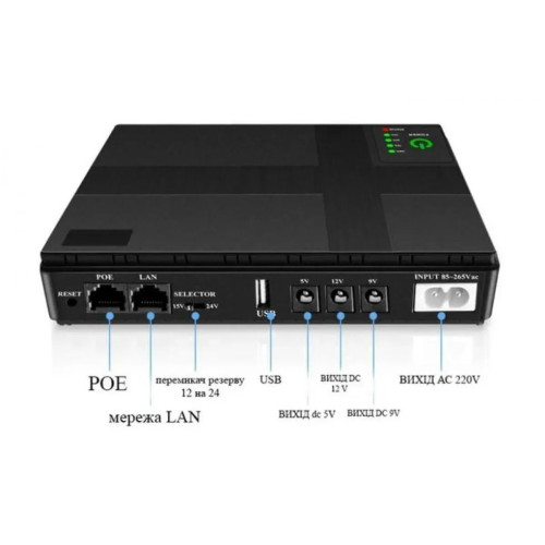 - Вихідні напруги: 5V, 9V, 12V – сумісний з більшістю роутерів, камер спостереження та іншого обладнання.