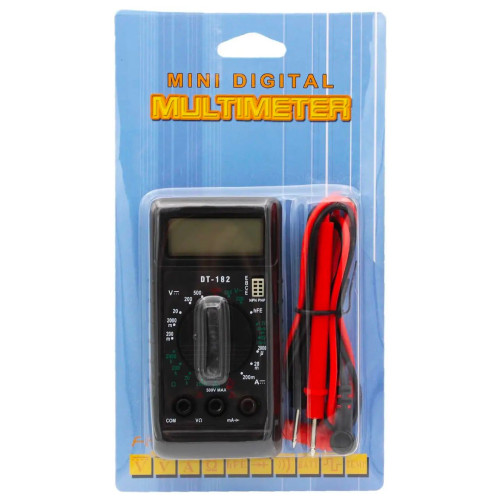 Цифровий мультиметр DT-182 — це багатофункціональний інструмент для вимірювань в електротехніці, який пропонує широкий спектр можливостей для побутових і професійних робіт. Він компактний, легкий та простий у використанні, що робить його ідеальним вибором для електриків, технічних спеціалістів та майстрів-аматорів. Завдяки своїм компактним розмірам, він зручно поміщається у руку, а його багатофункціональність дозволяє виконувати різні вимірювання на високому рівні точності.