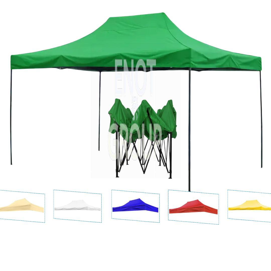 Дах для торгового намету 2x3 м у зеленому кольорі забезпечує надійний захист від дощу та сонця, надаючи намету стильний і природний вигляд. Завдяки водонепроникній тканині, цей дах ефективно захищає від опадів, а міцна конструкція гарантує тривалу службу. Ідеальний вибір для заміни старого даху, цей тент забезпечить не тільки надійний захист, але й гармонійно впишеться у будь-яке оточення