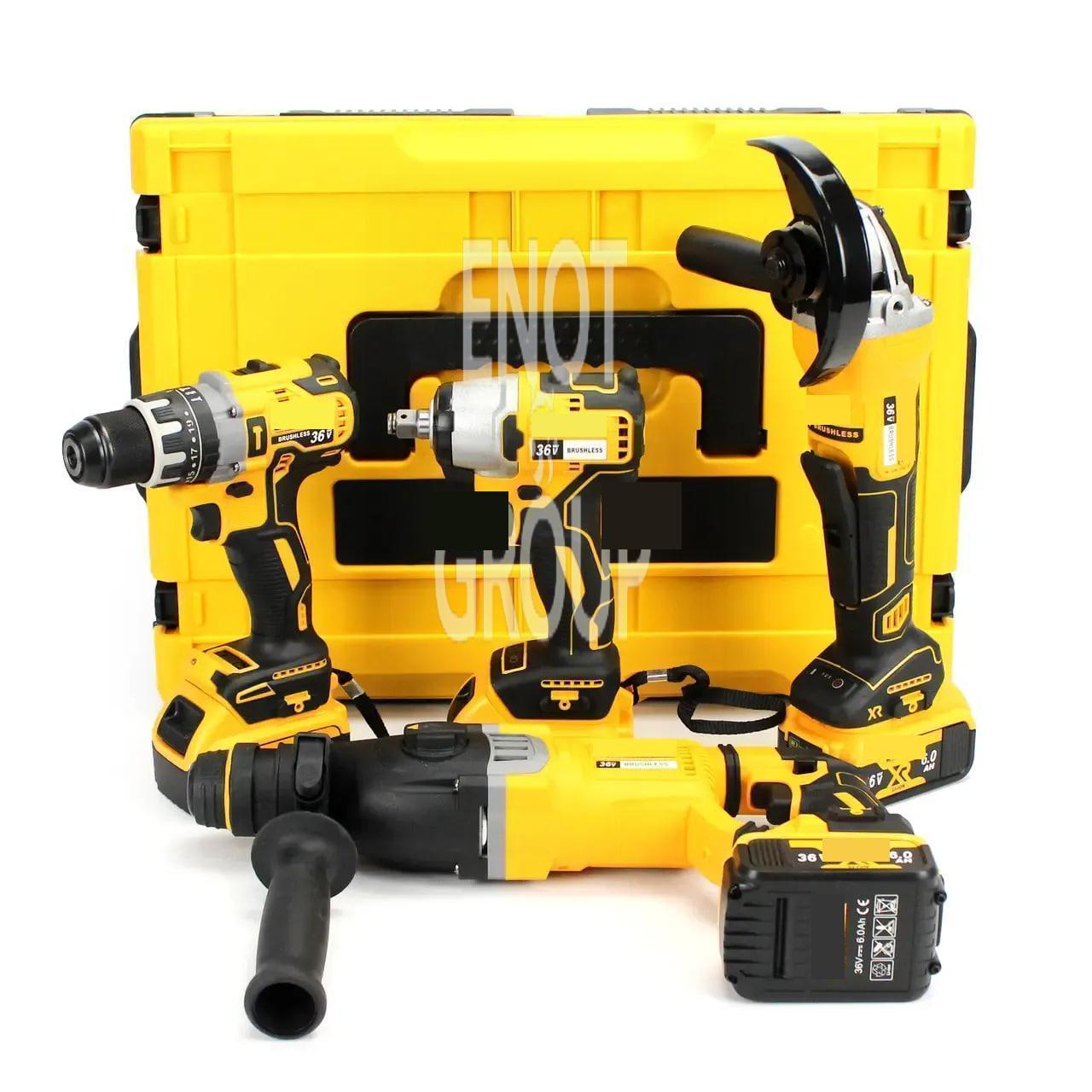 Instrumentop 4 в 1 MAX Power Set 36V — Шуруповерт, Болгарка, Перфоратор, Гайковерт із акумуляторами та кейсом для профі