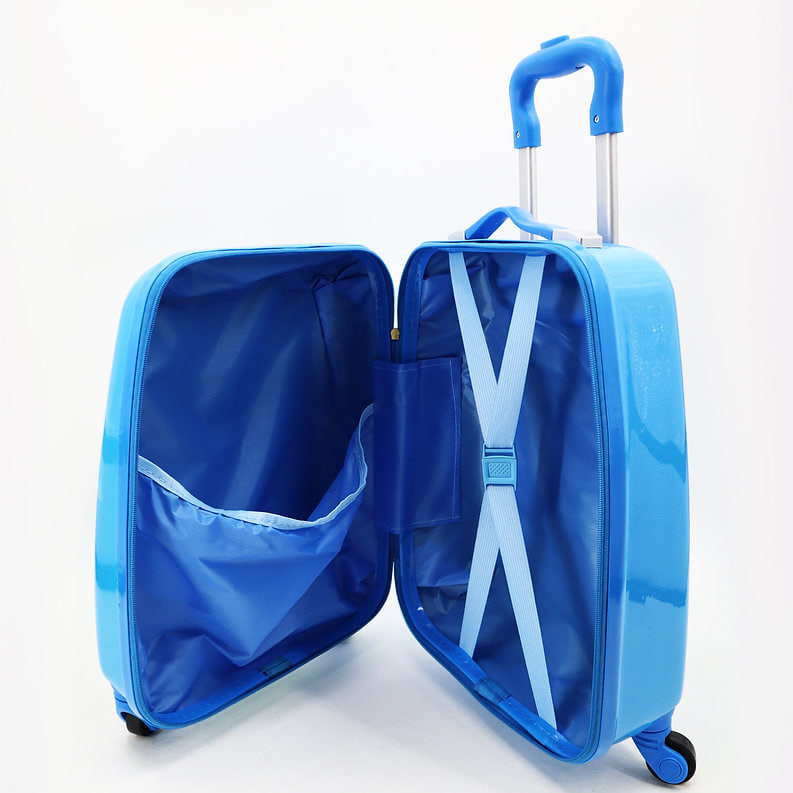 Всередині чемодан має велике відділення з фіксуючими ременями, що допомагають утримувати одяг, взуття, іграшки та інші речі на місці, запобігаючи їх зміщенню під час поїздки. Яскравий сучасний дизайн робить чемодан помітним і привабливим для дітей, додаючи позитивних емоцій під час подорожей.
