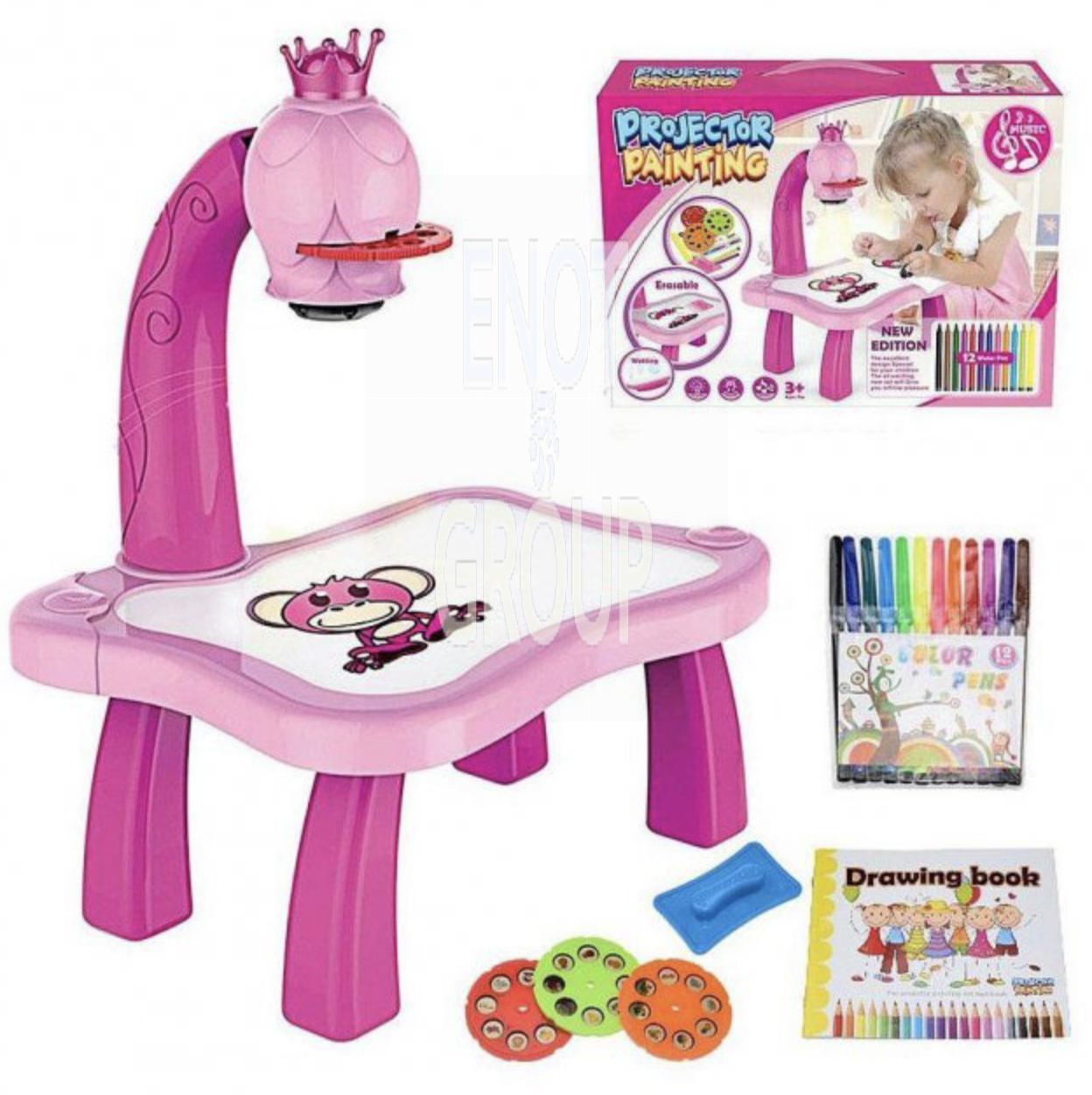 Дитячий стіл проектор для малювання з підсвічуванням рожевий| Ідеальний набір для розвитку творчості