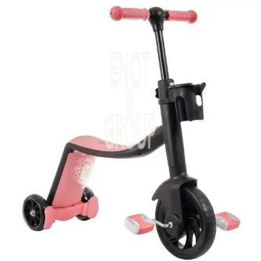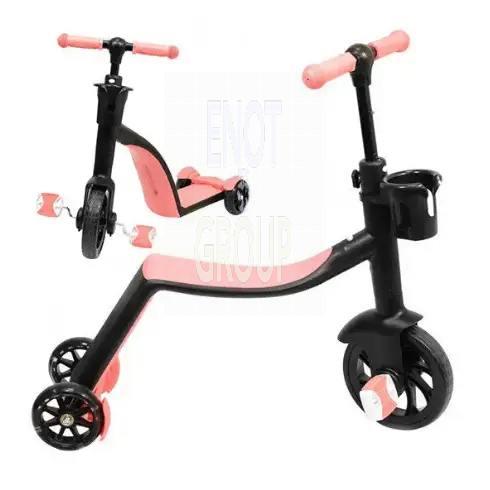 Дитячий транспорт 3 в 1 (рожевий) – велосипед, самокат і велобіг в одному
