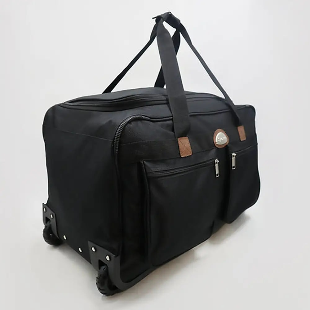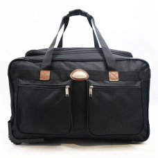 Телескопічна висувна ручка та плавні роликові колеса гарантують легке пересування сумки по аеропорту, вокзалу чи вулиці. Усередині сумки є основне відділення, відсік для взуття, кишеня для ноутбука та органайзери для дрібних предметів. Зовнішня кишеня дозволяє швидко дістати документи чи аксесуари під час подорожі. Сучасний чорний дизайн сумки підкреслить ваш стиль та стане надійним супутником у будь-яких поїздках.