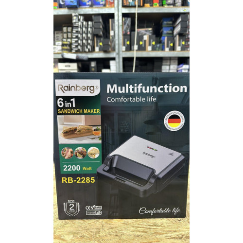 Електричний Гриль 6 в 1 Rainberg RB-2285 Вафельниця орешниця сандвічниця і більше