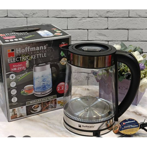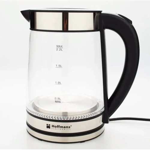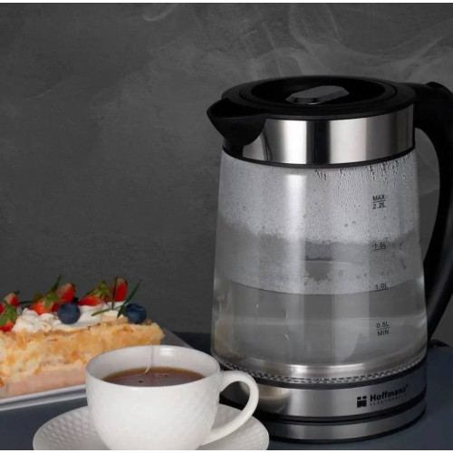 Електрочайник скляний Hoffmans HM-2515 2,2 л, 1800 Вт прозорий корпус із термостійкого скла, LED-підсвітка, автоматичне вимкнення