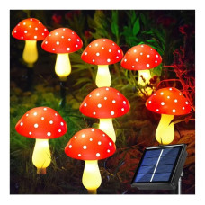 Гірлянда Чарівні Мухомори MA759 на сонячній батареї, 8 режимів світіння, вулична та садова декоративна підсвітка