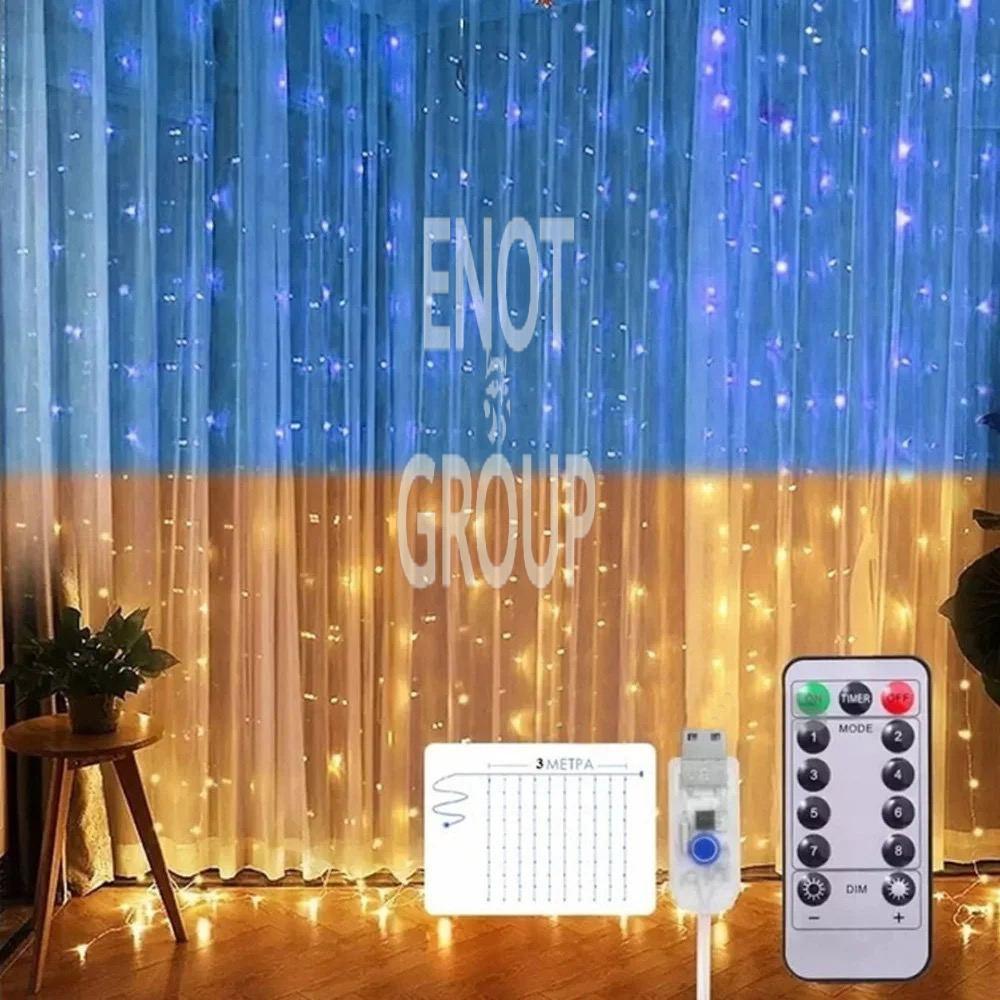 Гірлянда Штора "Прапор України" з пультом та USB – патріотичне освітлення для вашого дому!
