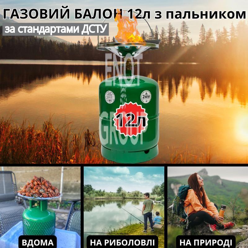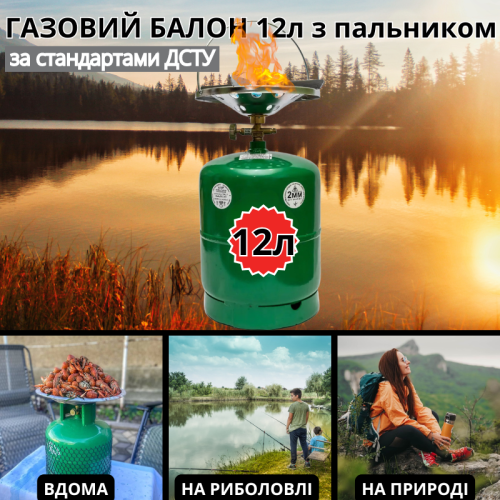 Газовий балон 12 л з пальником (зелений) – Економія та комфорт у будь-яких умовах