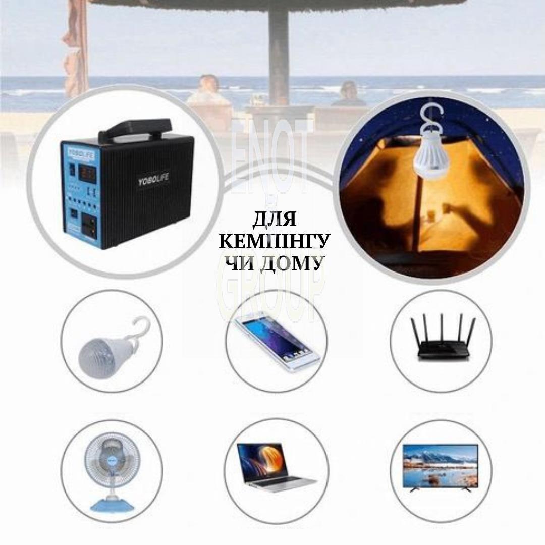 - Мультифункціональність: Підходить для освітлення, зарядки пристроїв та живлення невеликих електроприладів.