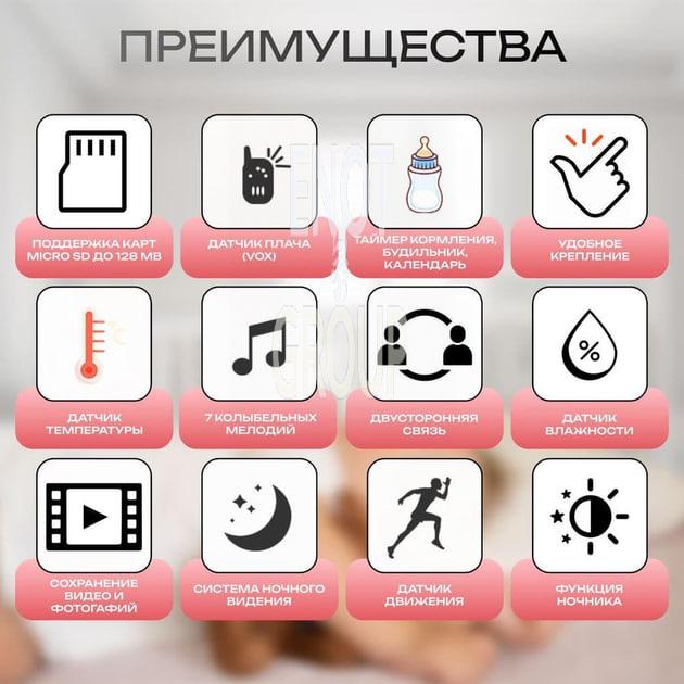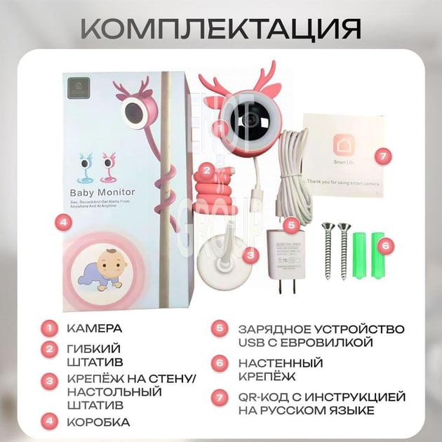 IP Wi-Fi Відеоняня Baby Monitor 4MP 1440P — Рожева | Камера спостереження з нічним баченням, двостороннім зв’язком і датчиком руху