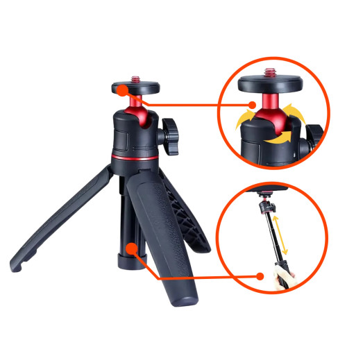 Завдяки висоті 21 см і міцному корпусу, він забезпечує стійкість навіть на нерівній поверхні. Підходить для смартфонів, компактних камер та екшн-камер. Легко складається, займає мінімум місця й поміщається навіть у невелику сумку.